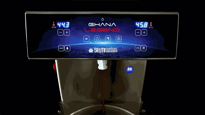 Legend, new version of the Ghana chocolate tempering machine, with adigital control panel that increases versatility of use and economy of operation .