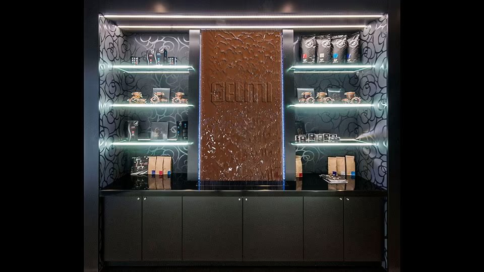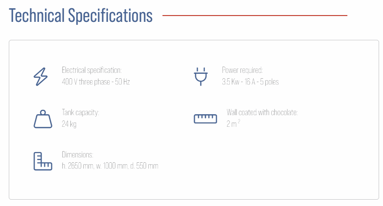 The chocolate wall fountain will appeal to the most innovative venues on the market as it offers the possibility of obtaining a sensational atmosphere creating, on an area of about 2 square meters, a waterfall of continuous flowing chocolate that, in addition to the visual effect emphasized with LED lighting , emanates inviting aromas of chocolateinside the room.