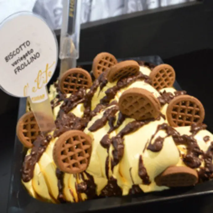 Variegato with cocoa biscuits grains with a rich taste, slightly vanilla-flavoured. It is ideal to combine with vanilla biscuit paste.
